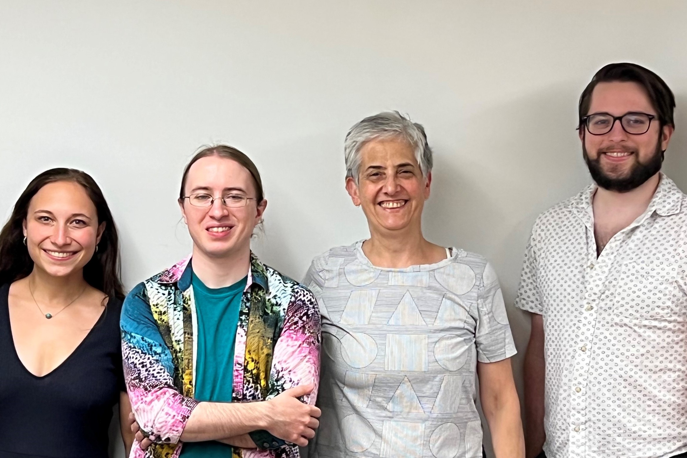 Rachel is shown here with members of her Dissertation committee - from left Dr. Draga Zec, Rachel Vogel, Dr. Abigail Cohen (committee chair), and Dr. Sam Tilsen.
