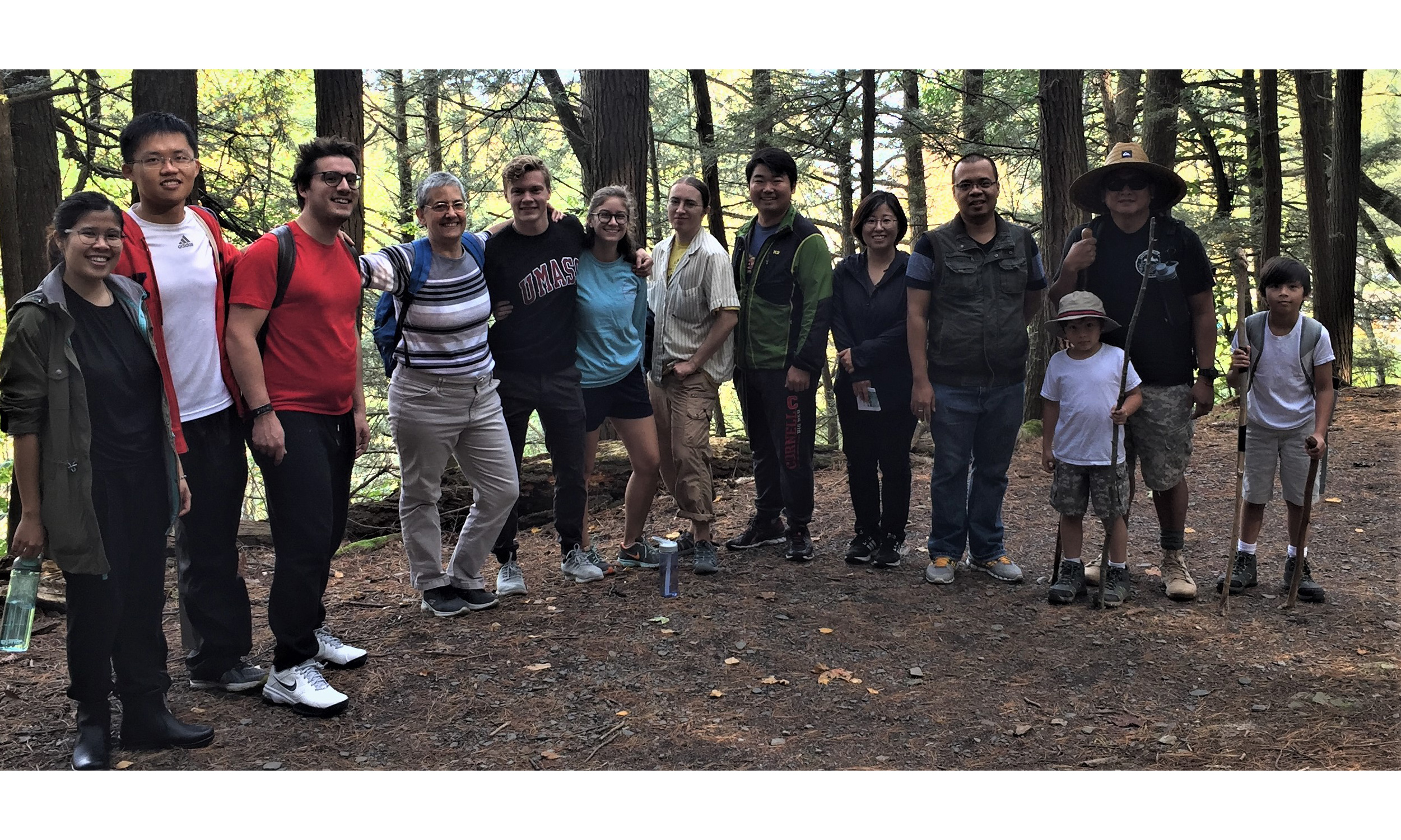 The Phonetics Lab held its annual Fall outing at Taughannock Park on October 15, 2017. The assembled adults and children hiked the South Rim Trail, which has many beautiful views of Taughannock Falls. The weather was sunny, warm, and absolutely perfect. Afterward everyone went to the Glenwood Pines for a lunch hosted by the P-Lab. It was a wonderful day for all, and we are fairly sure that the little ones didn't bring home any toads, bugs, or frogs to show their parents.