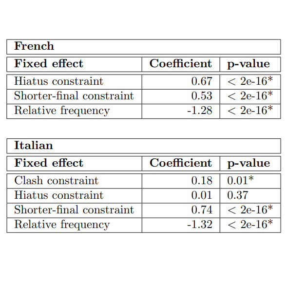 This work investigates the phonological conditioning factors on variable word order of {noun, adjective} phrases in two Romance languages: French and Italian.